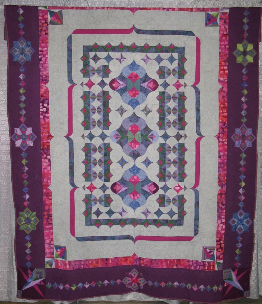 This quilt has been in the works for more years than is comfortable to admit. It was started for my son Jonathan as a celebration for the award of his PhD degree in 1997. It is a visual expression of my pride in his achievement. Life's more challenging and heartfelt passages contributed to the delay in finishing it. Now it is given not only to honor Jonathan's scholarly achievement, but also to express my gratitude for his help, encouragement, and comfort to me at the loss of his father and my husband of more than fifty years. For me quilting is an outlet for expressing esthetic impulses. Making Jonathan's Quilt taught me the importance of quilting as an expression of love and loss and pride in the achievement of a child.