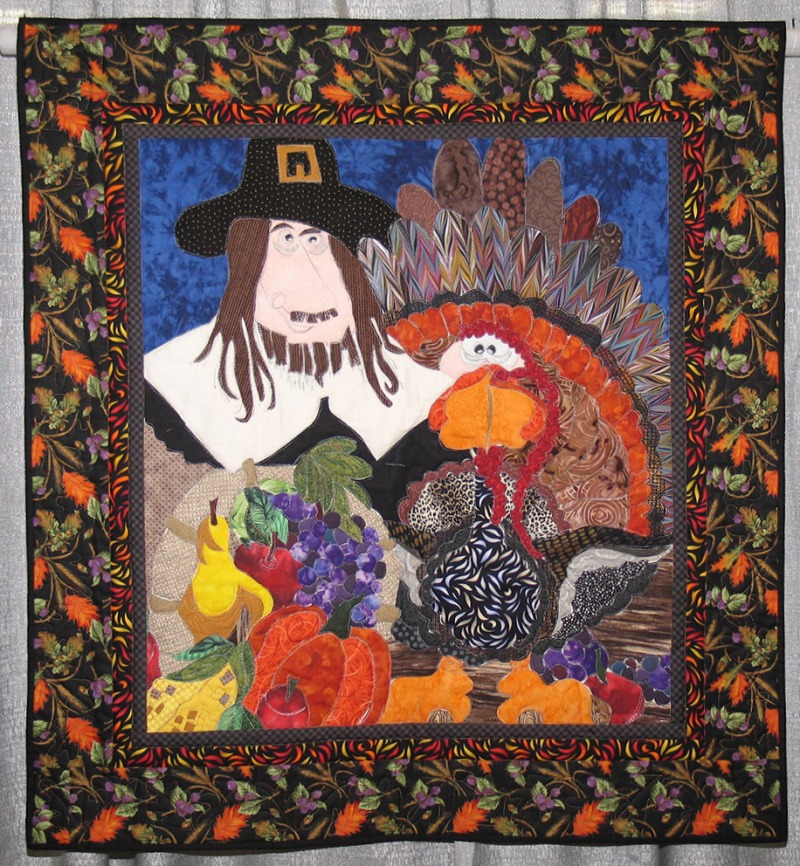 I saw this pattern in a quilt shop in California last fall. I fell in love with the pattern and needed this challenge. Raw-edge machine appliqué was a new technique for me. The pieces were not supposed to match up perfectly and the background foundation is supposed to show! This was "out of the box" for me and I loved it!