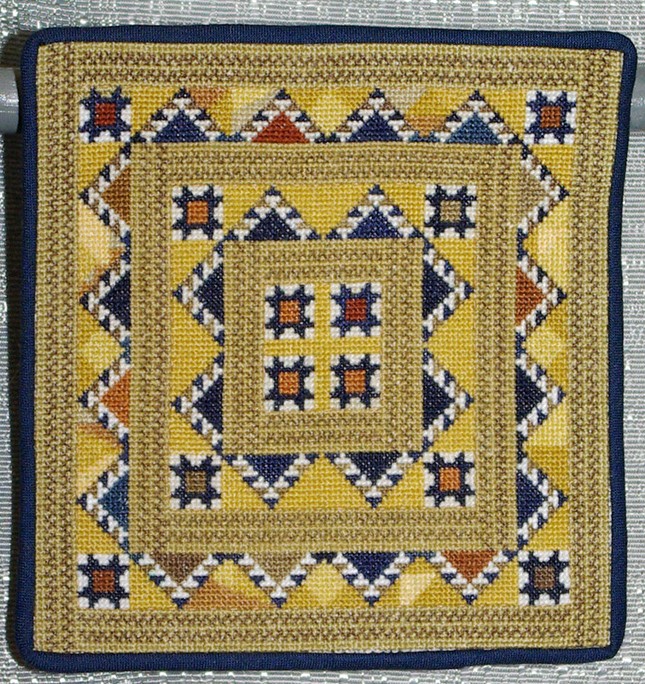 This little piece was a joy to stitch and is a great favorite. I altered the pattern to make it look like the maker was running out of some of her fabric. It received a Merit Award at the 2008 Austin Stitchery Guild Show in February this year.