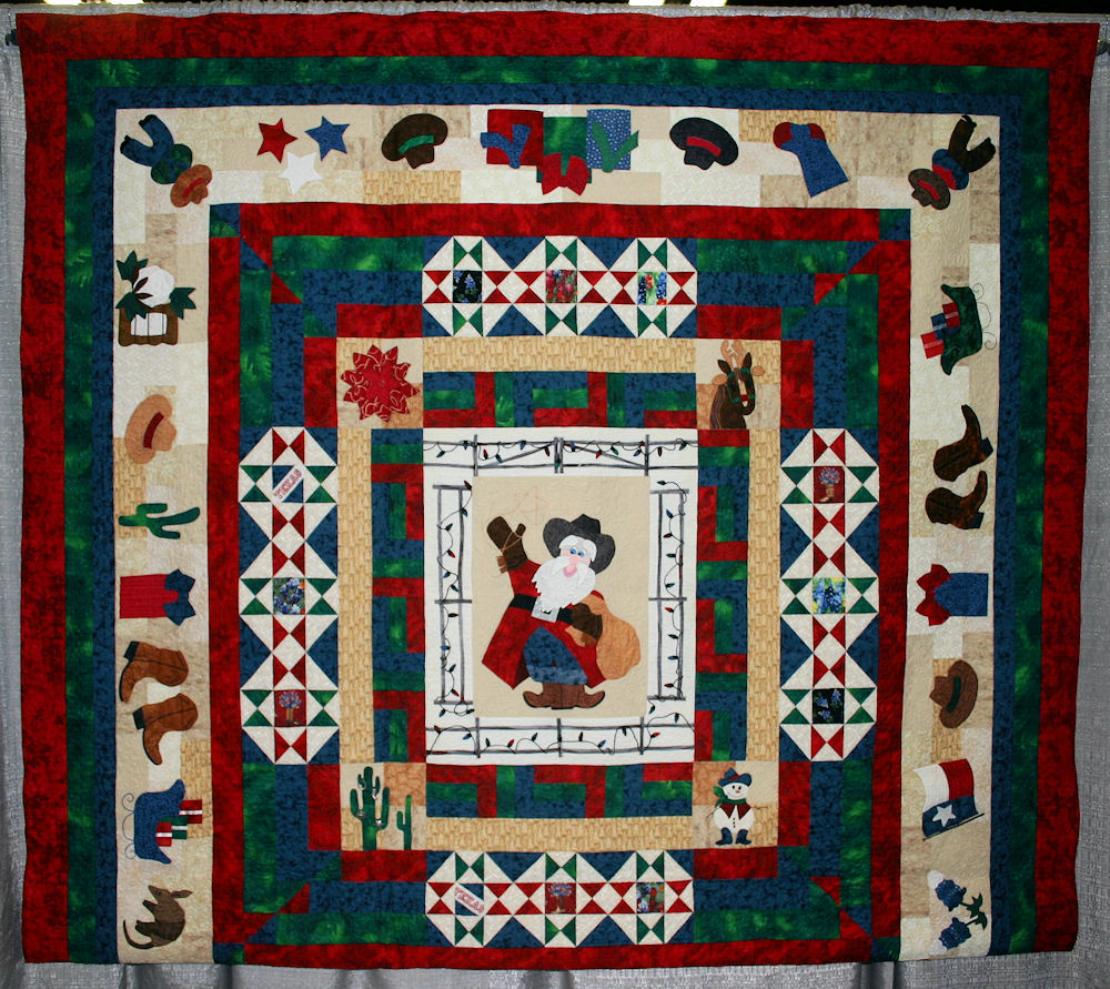 I have been in a Round Robin for 10 years. I moved to Singapore in 2004 and, in 2005, got 3 ladies to join me in an "International Round Robin". I made the medallion, border #4 (with all of the needle turning applique), and the finishing border. This quilt traveled to Japan and Canada. Ijust love "Bubba Claus".
