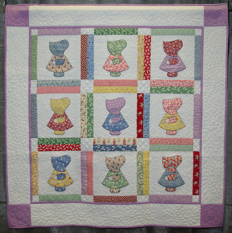I am wearing my best clothes, but I can't decide where to go or, maybe, there is nowhere that will admit me. My clothes are outdated. No one wears a bonnet anymore. My shoes match my hat and need I say more. I will come to the quilt show and be entertained, charmed, cheered, comforted by you. I think I found my place; it's here, with you. - Sun Bonnet Sue