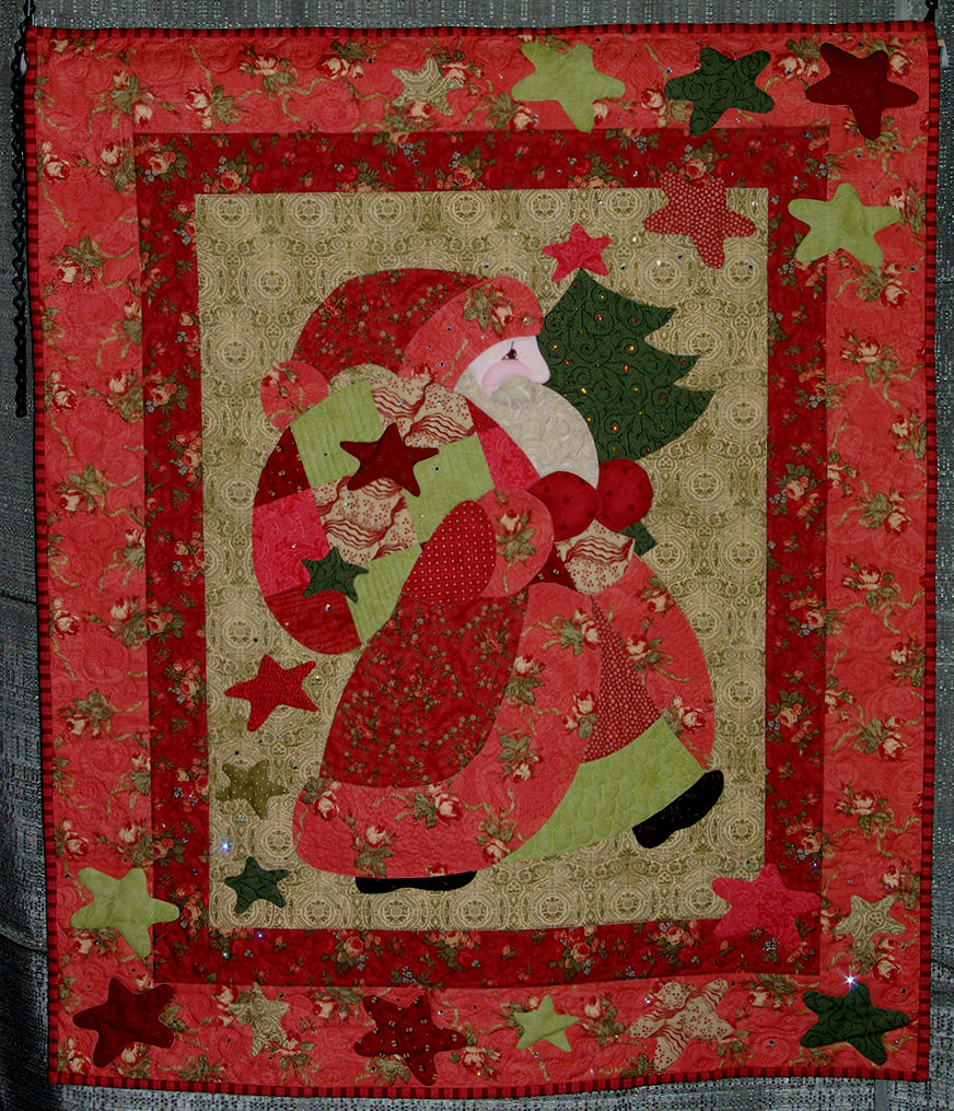 An old Santa pattern, but still fun to do. Fabrics from the late 90's. It always seems to take me awhile to make all the patterns and fabrics that I buy at quilt shows. Some of you can relate!
