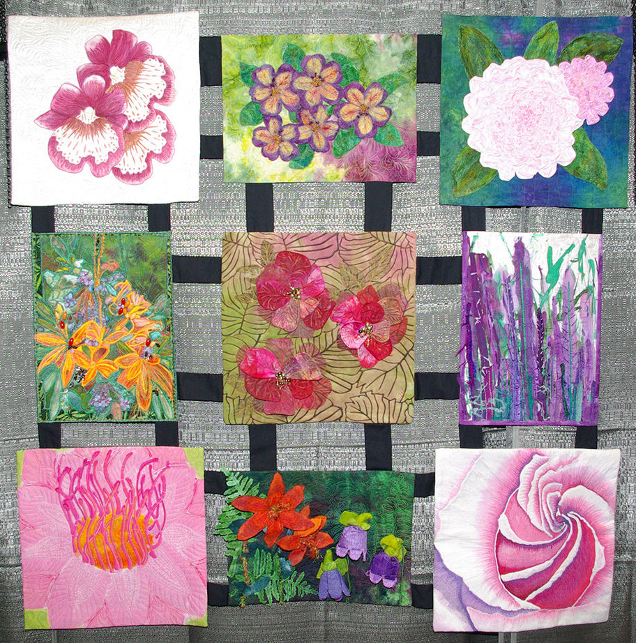 Hand Appliqué, Hand Embroidery, Machine Piecing, Machine Quilting, Embellishment (beading, 3D flowers), hand dyed, batiking, painting, felting